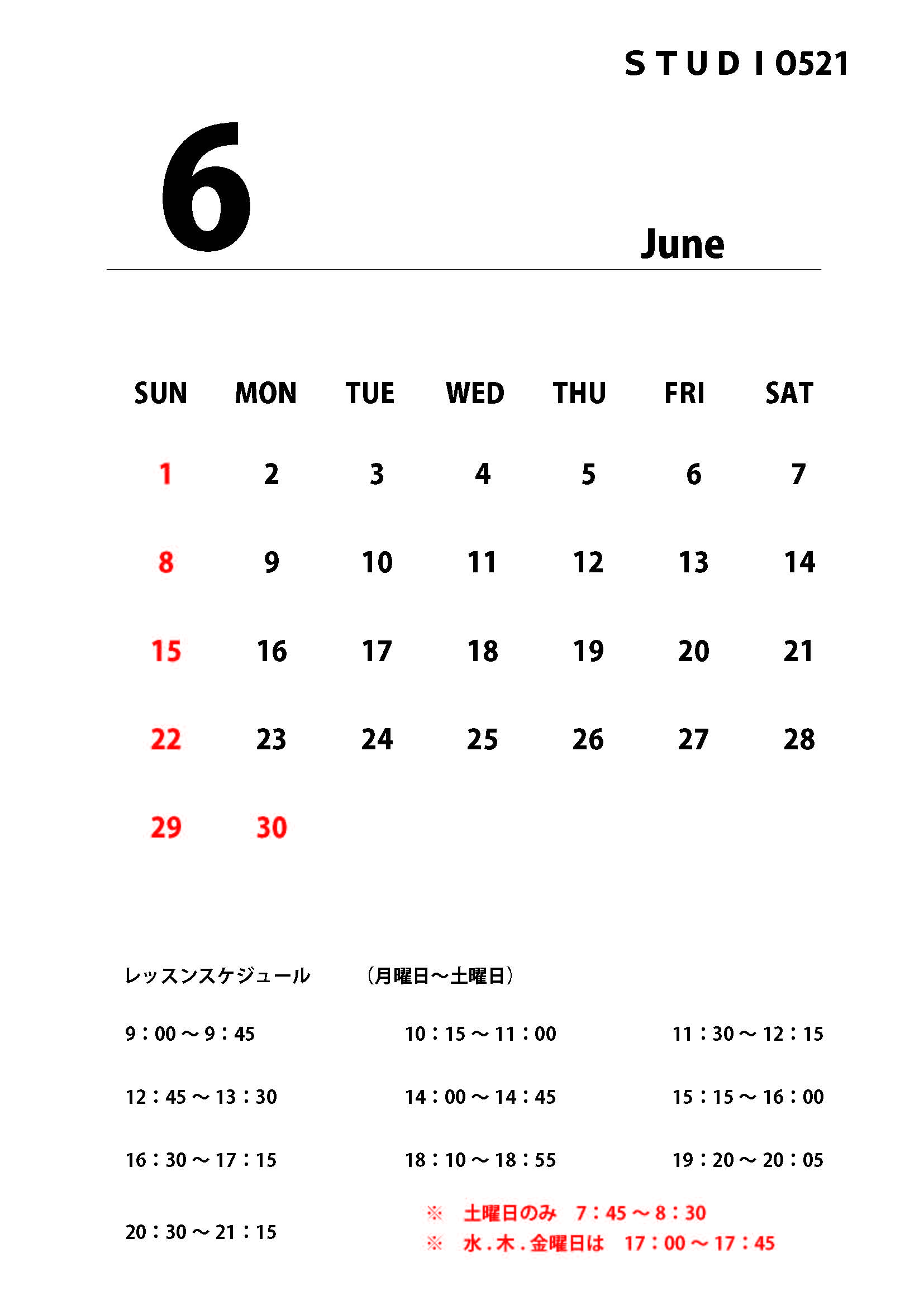 6月スクールカレンダー
