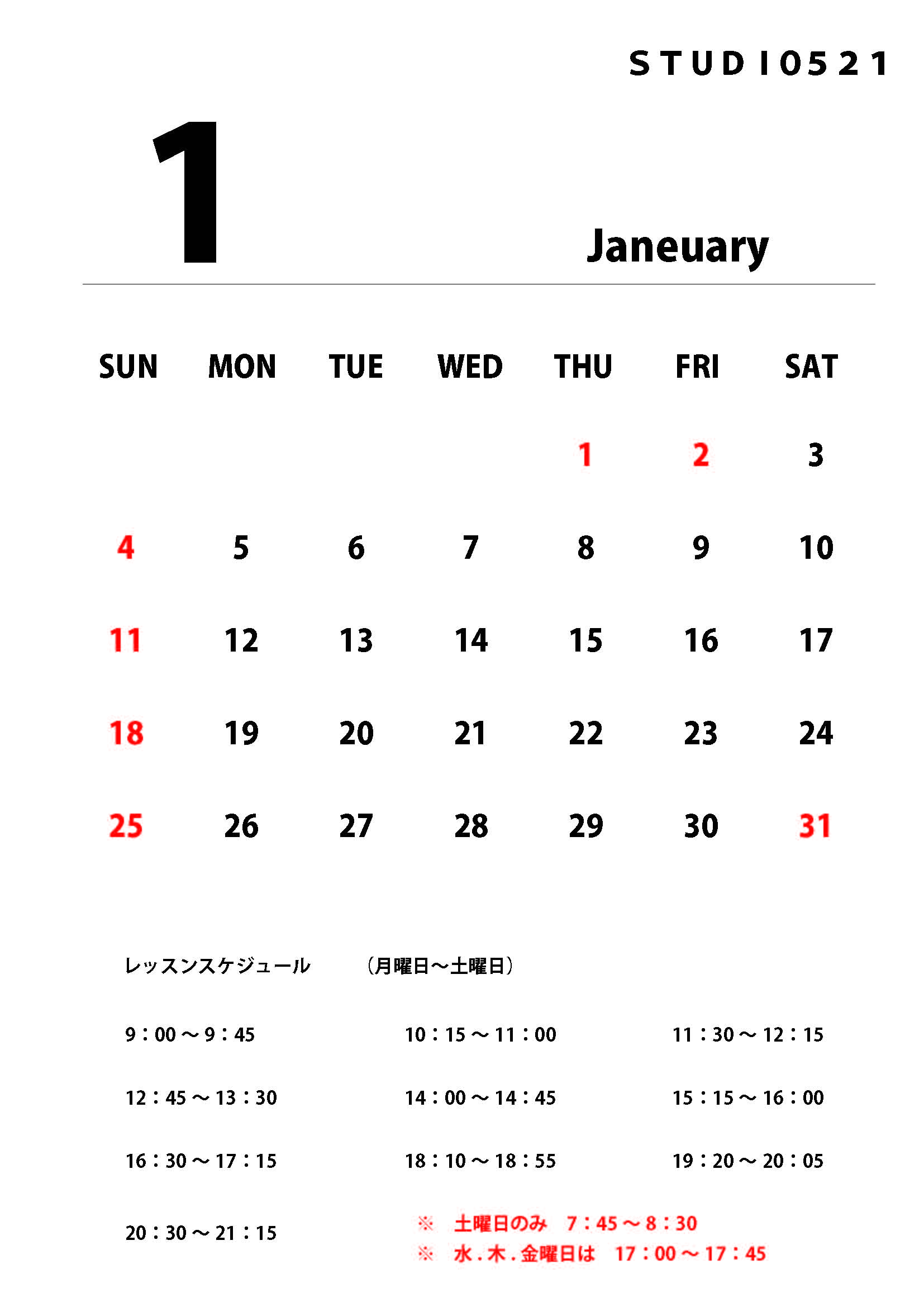 1月スクールカレンダー