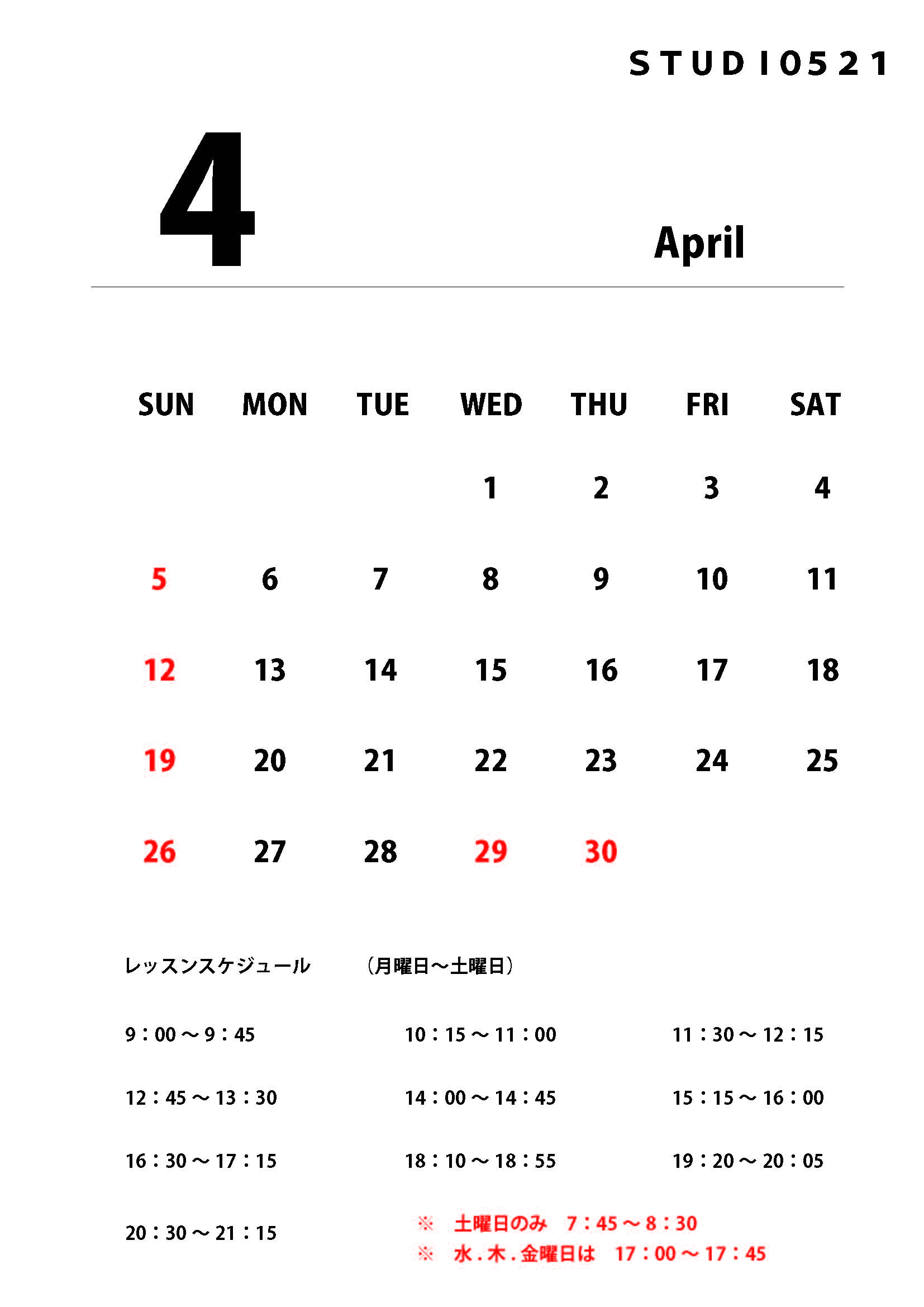 4月営業のお知らせ